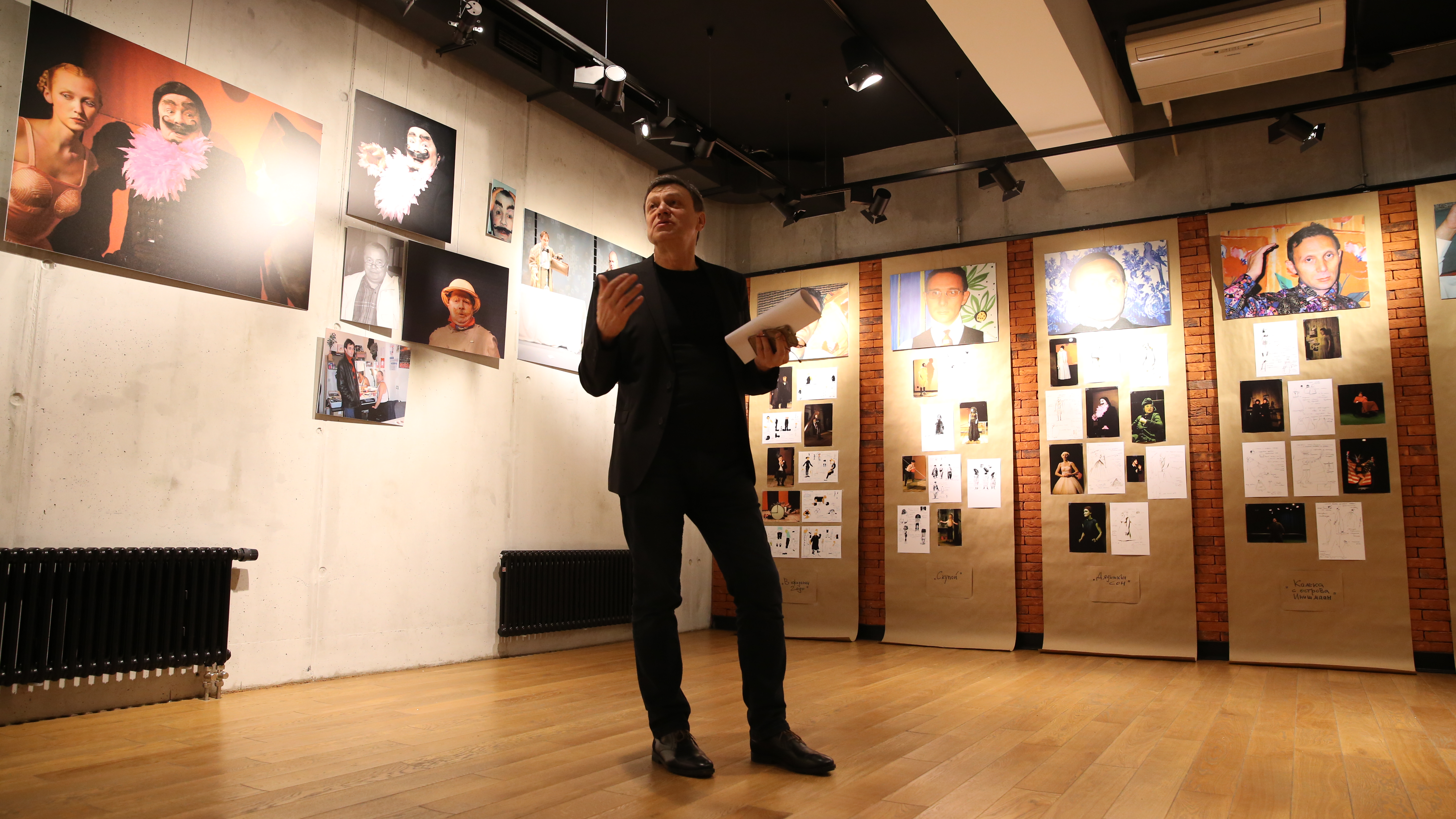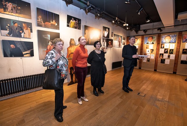 «Сегодня мы хотим представить вам одну из юбилейных выставок. Она посвящена нашим коллегам, которые много лет работали вместе с нами и, к сожалению, нас покинули. У каждого из них была большая творческая жизнь. У Анатолия Гафаровича и Александра Тарасенко - много лет ТЮЗа, личные проекты, совместная работа. Юрий Гальперин - известный художник международного уровня. Но охватить всё, что сделано и пережито, и представить на этой выставке было бы невозможно. Мы остановились на том, что связывало этих людей именно с Камерным, с нашим совместным творчеством, с нашей совместной жизнью: мы смеялись, спорили, обсуждали нашу действительность. Всё это – в памяти, и никуда не уходит», - отметил художественный руководитель театра Михаил Владимирович Бычков.