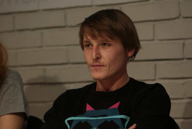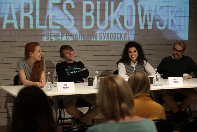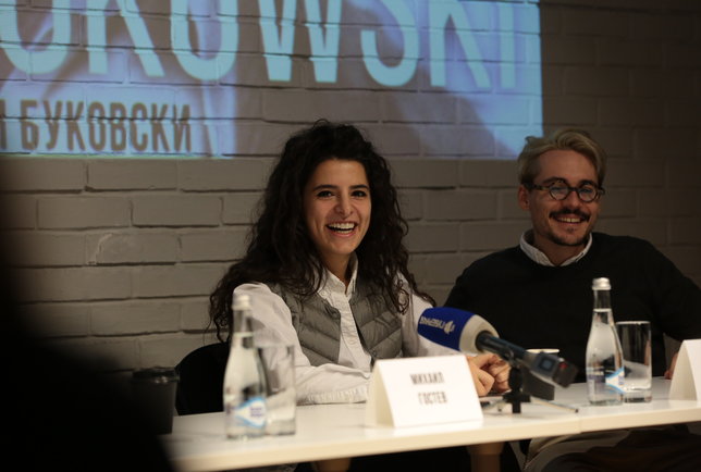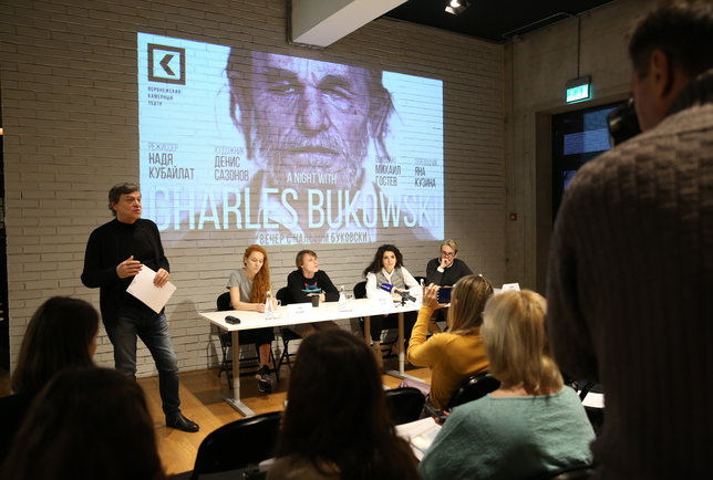 18 декабря на Малой сцене состоялась премьера «Вечер с Чарльзом Буковски» молодого московского режиссера Нади Кубайлат. Во встрече с журналистами кроме неё приняли участие художник Денис Сазонов и актеры Михаил Гостев и Яна Кузина. Их совместная работа получилась очень необычной — похожего спектакля в репертуаре театра не было.