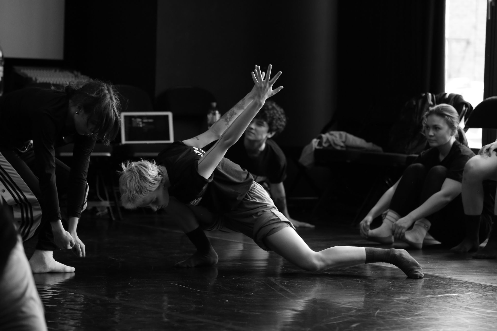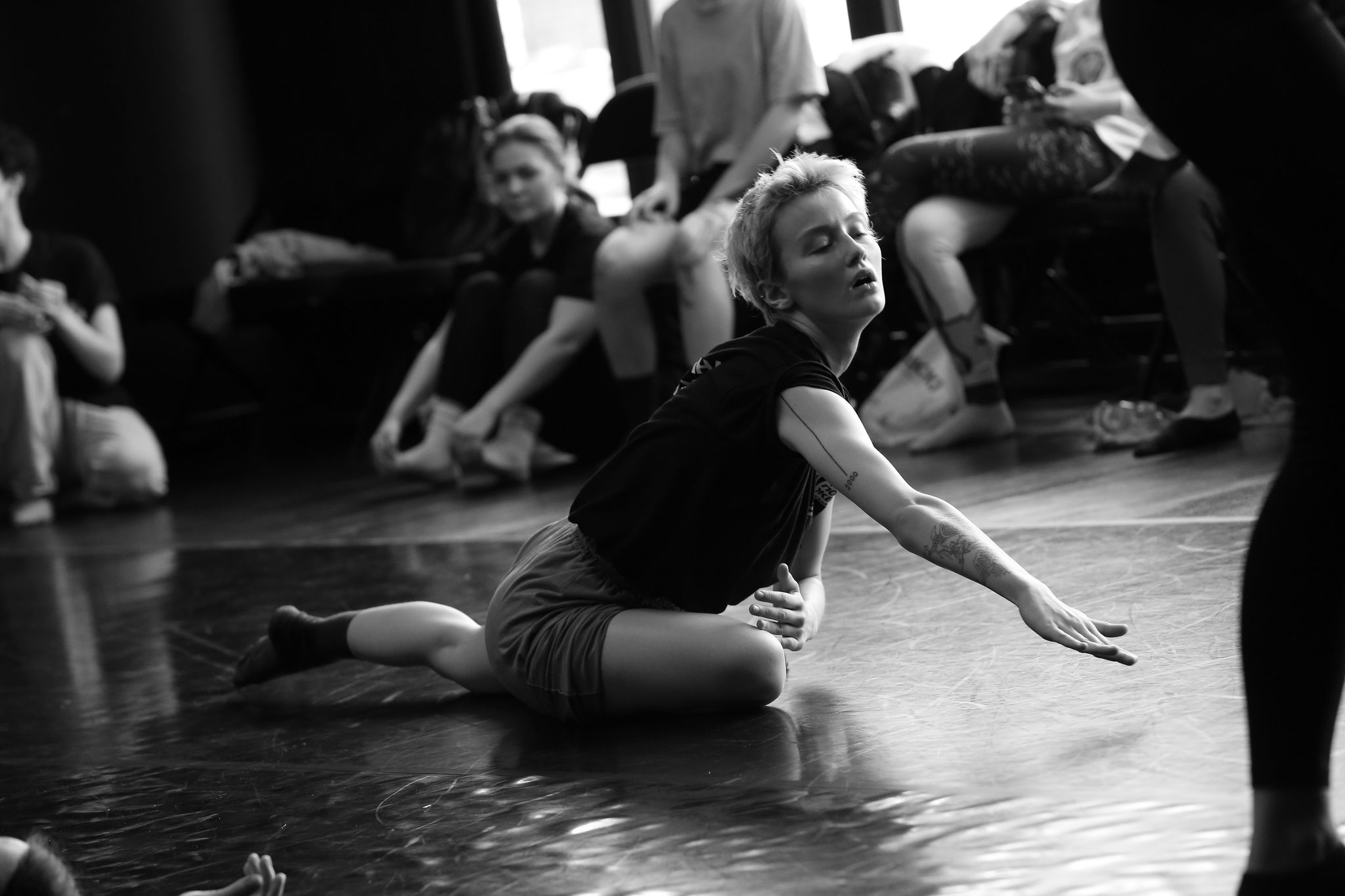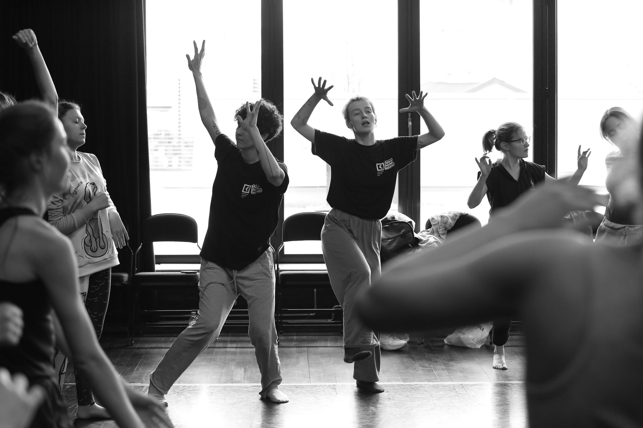 Первый мастер-класс Полины Глухих и Марии Николаевой настроил участников на серьезную, но аккуратную и экологичную работу с телом. «Используйте то, что у вас уже есть, и не старайтесь использовать то, чего у вас нет», – порекомендовала Мария. Результатом такой настройки стала энергичная и осознанная практика, которая зарядила танцовщиков на целый день. Затем участники прошли первую часть класса Ивана и Виктории, а после начали погружаться в танцевальную лабораторию.