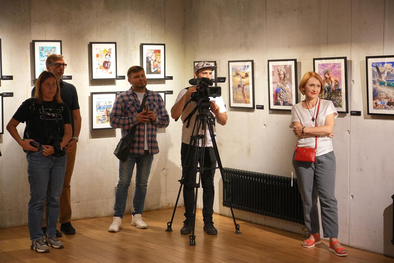 Открывали выставку куратор проекта, артист Камерного театра Камиль Тукаев и художник Наталья Коньшина.