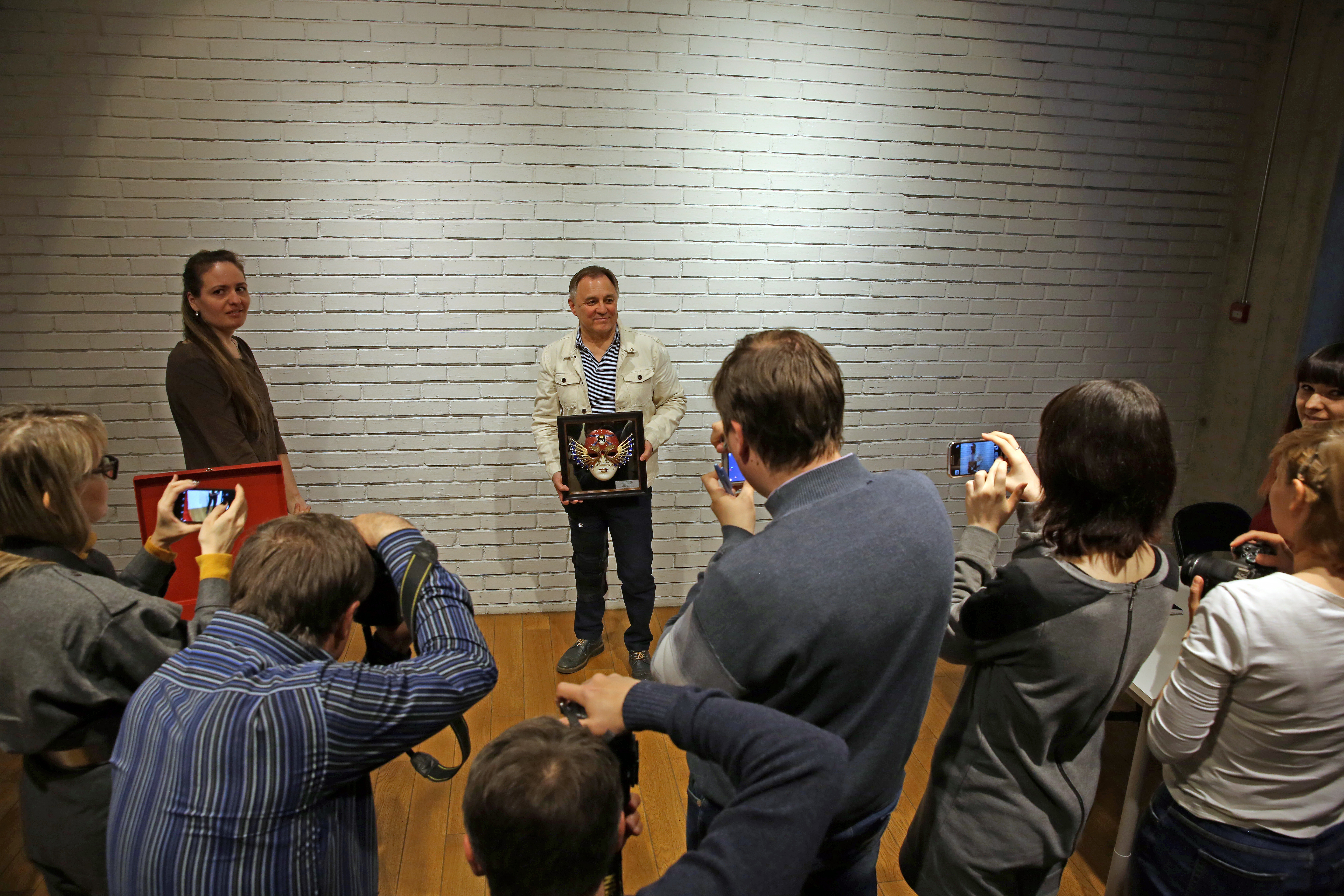Пресс-конференция завершилась вопросами журналистов и фотосессией с лауреатом Премии и «Золотой маской», которая останется в стенах Камерного театра. «Это называется «Отдать на ответственное хранение», – пояснил Камиль Тукаев.